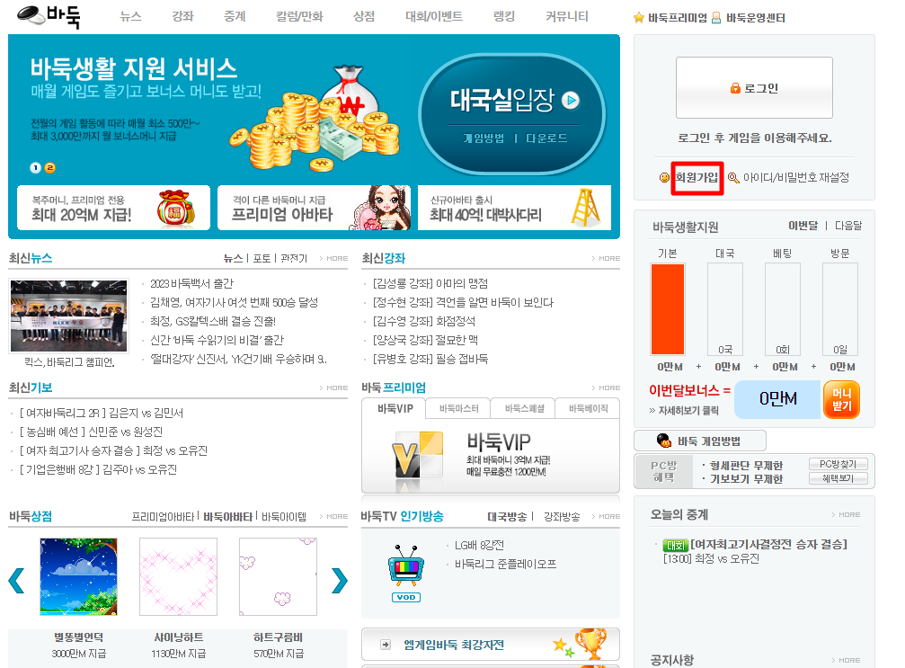 설치가 완료되고 엠게임바둑 대기실에 입장한 화면의 모습입니다.우측 중하단을 보시면 자동대국신청,바로대국하기,방만들기 메뉴가 있습니다.원하는 버튼을 클릭하세요