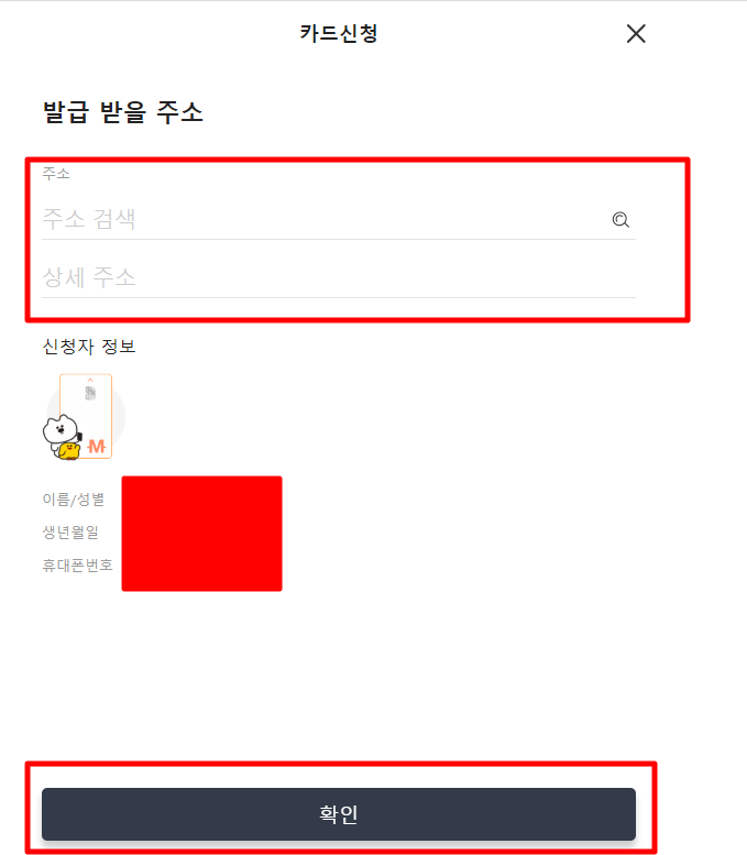참고로 카드 배송할 주소지를 변경하거나 카드신청을 취소할수도 있으니 이점 참고하시기 바랍니다