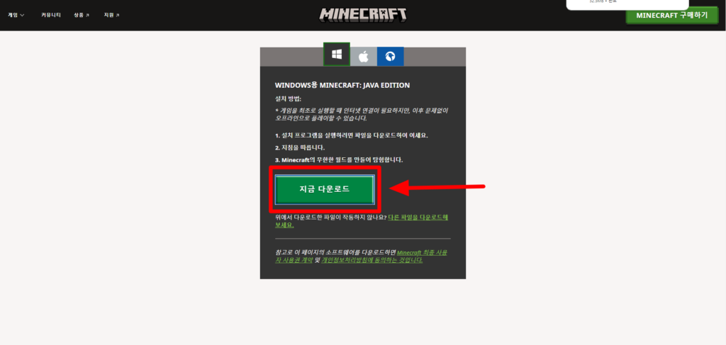 마인크래프트 설치하기