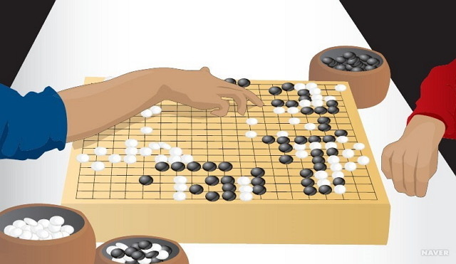 1. 바둑은 기본적으로 두 사람이 하는 경기이기 때문에 바둑판은 마주보고 있는 두 사람 사이에 놓습니다.