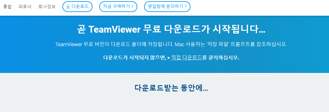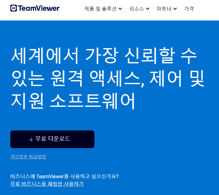 3. 팀뷰어 홈페이지에 접속한 모습입니다. 팀뷰어를 다운로드하기 위해 다운로드 버튼을 클릭하시기 바랍니다.