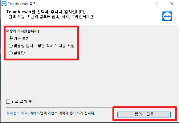 6.기본설치를 설정하신후 동의버튼을 눌러서 설치를 계속해서 진행하시기 바랍니다.