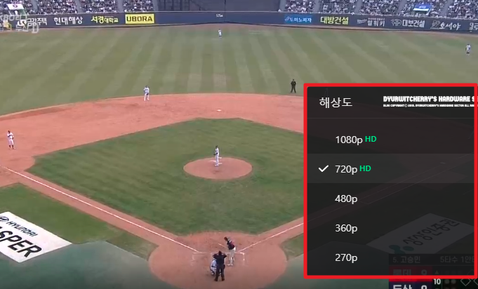 크롬 확장 프로그램 설치 후 네이버 스포츠에서 확장 설치 버튼을 다시 누르면 파일을 다운로드 할 수 있습니다. 이 다운로드된 프로그램을 설치하면 위와 같이 선명한 화질로 방송이 나오는 경우가 많습니다. 프로그램을 다운로드 할 수 없는 분들을 위해 파일을 첨부합니다.