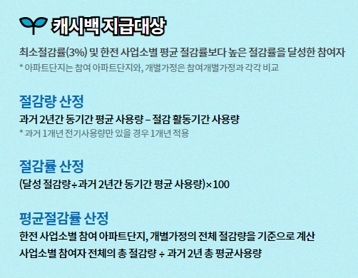 에너지 캐시백 지급 대상은 각 한전 사무실이나 아파트 단지에 참여하는 아파트와 가구 평균 저축률보다 높은 저축률을 달성한 개별 가구입니다.
