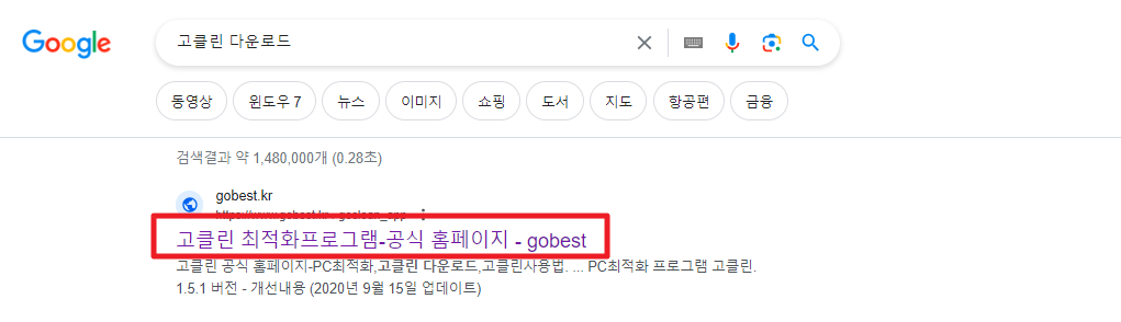 1.고클린을 설치해보겠습니다.우선 구글검색창에 고클린 다운로드 검색하면 공식홈페이지가 나옵니다.클릭하세요