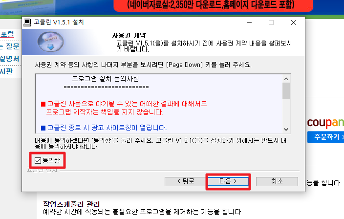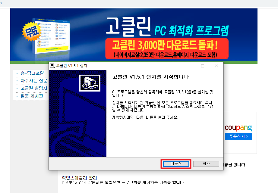 3.고클린 설치마법사가 나타나는데 다음버튼을 클릭합니다
