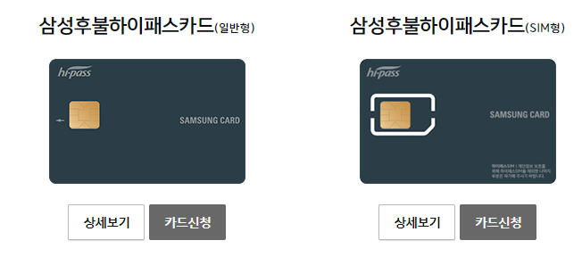 삼성카드 보유 시 삼성후불하이패스카드만 추가 신청 가능 삼성카드 미보유 시 삼성개인신용카드와 함께 신청 가능 삼성후불하이패스카드(일반형)로만 발급 가능