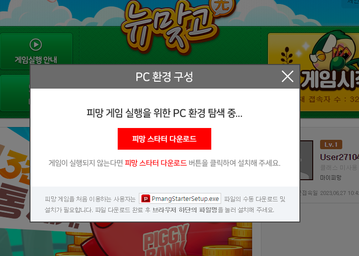 게임시작버튼을 누르면 다운로드 화면이 나오는데 피망스타터 다운로드 버튼을 클릭하세요